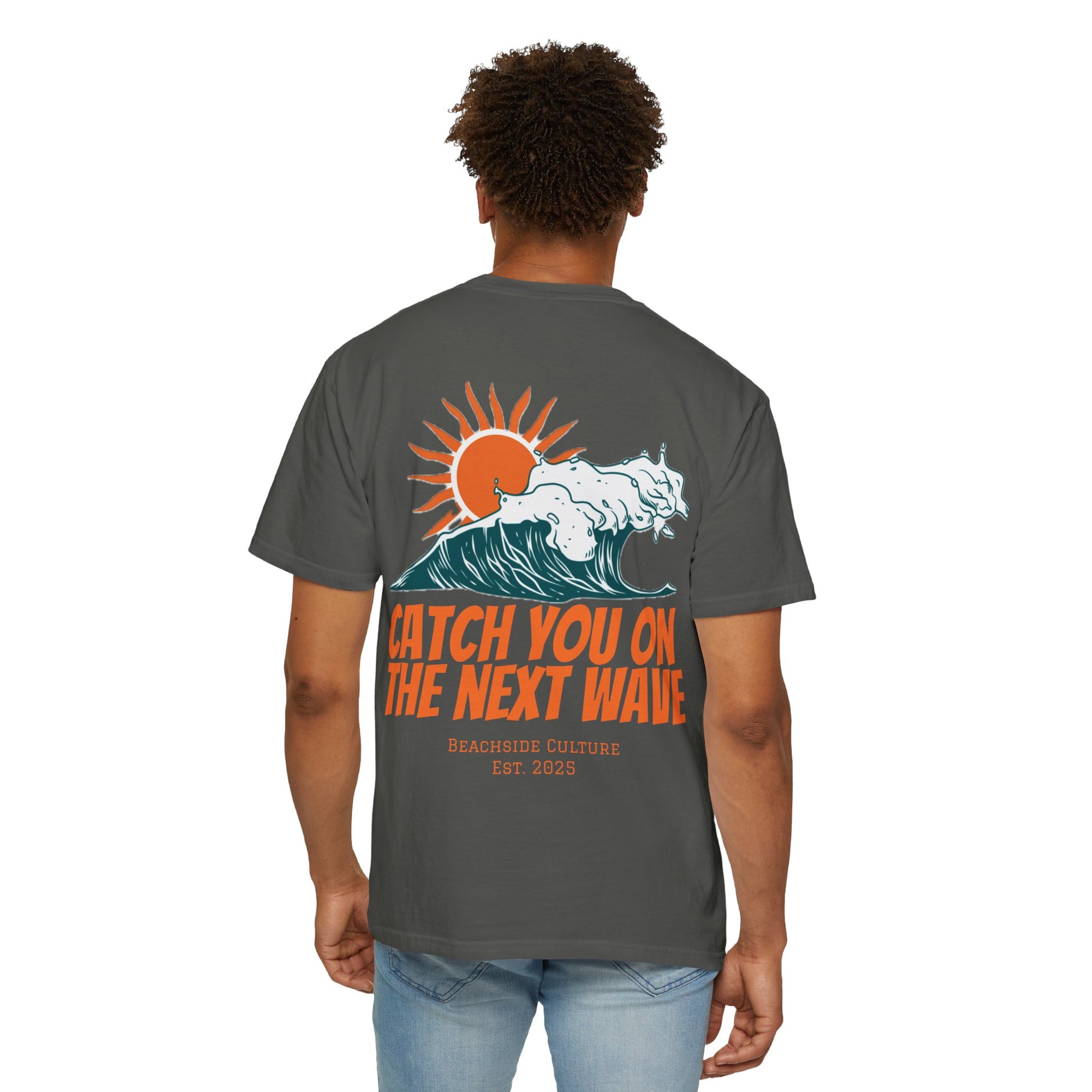 This garment-dyed T-shirt exudes good bibes, perfect for those who love a relaxed and laid-back style. Whether worn on a casual day out or a beach vacation, this tee is a great addition to anyone's wardrobe. Ideal for beach lovers, surf enthusiasts, and those who appreciate a carefree lifestyle. Perfect for summer!